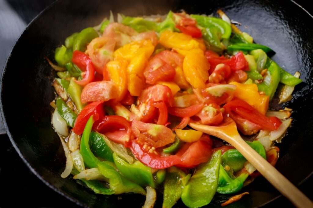 Abbassate la fiamma, versate l’acqua e coprite con un coperchio. Lasciate cuocere per circa 10 minuti, finché i friggitelli non risultano morbidi e appassiti.