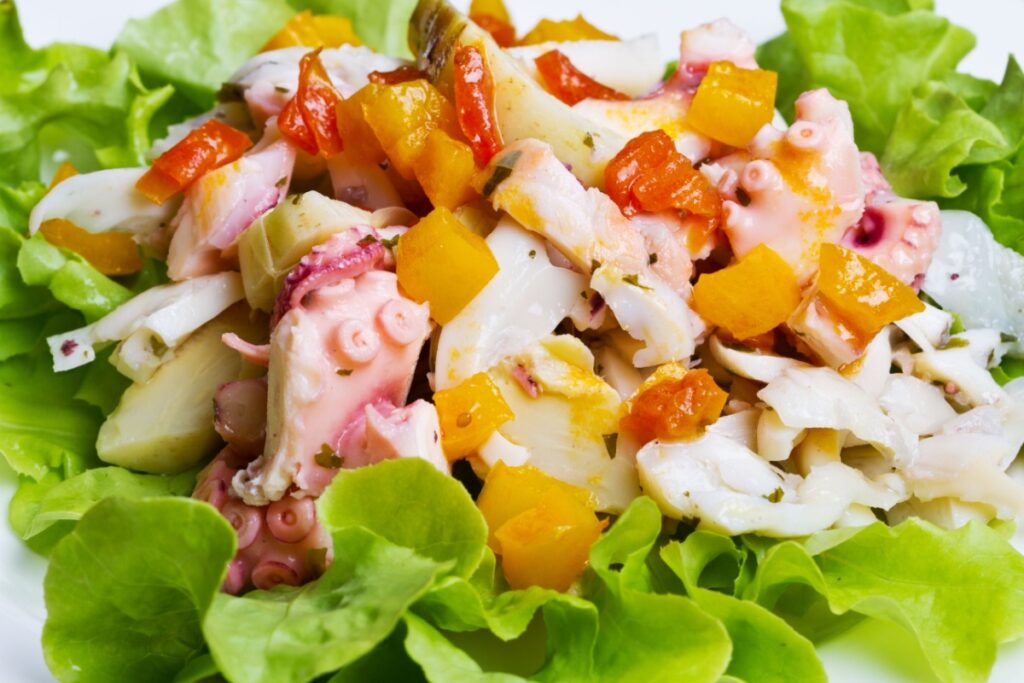 L’insalata di seppie senza glutine è un piatto fresco, leggero e ricco di gusto, perfetto come antipasto o secondo estivo. Le seppie, cotte fino a diventare tenere, vengono abbinate a pomodorini, sedano e prezzemolo, poi condite con olio extravergine d’oliva e succo di limone per un tocco agrumato e vivace.
